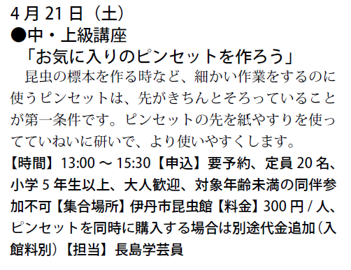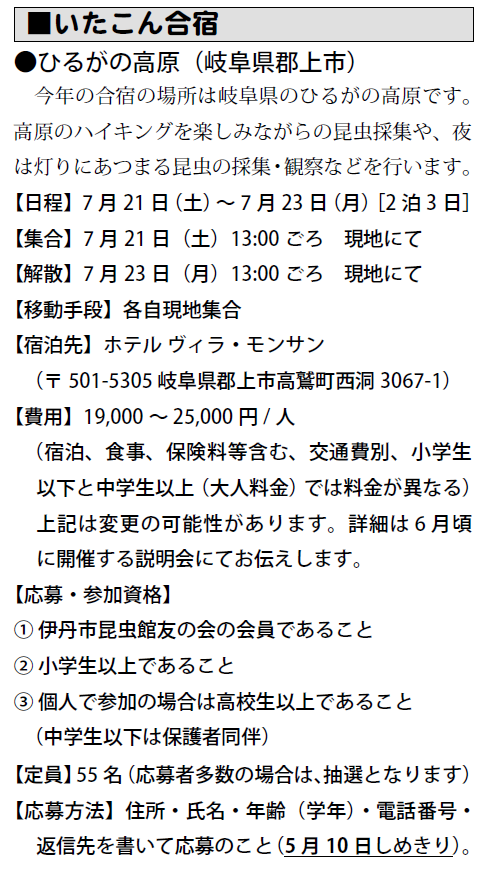 予定は、友の会ニュース又は、昆虫館に確認下さい。