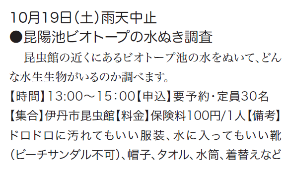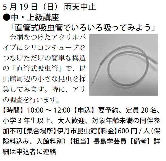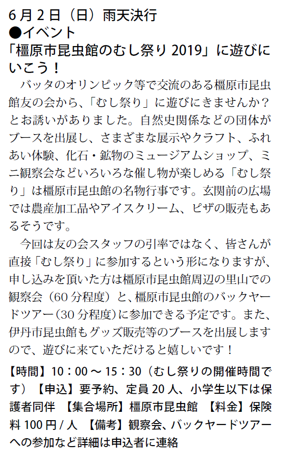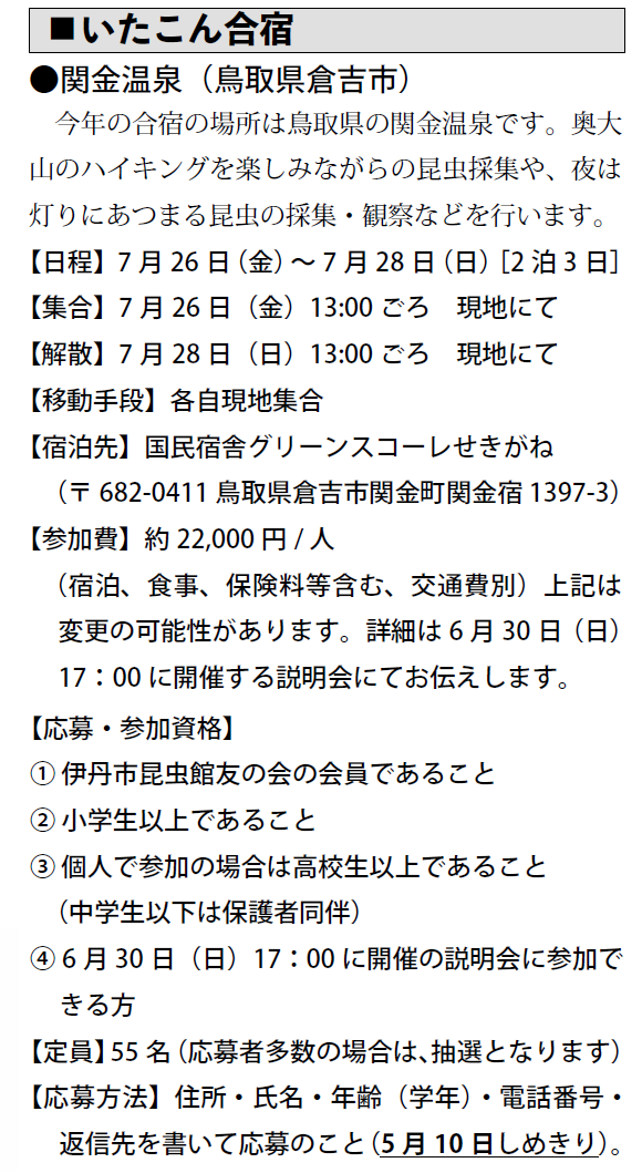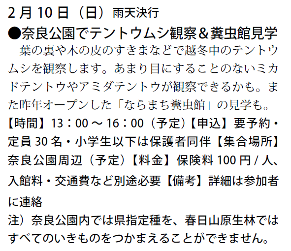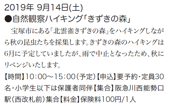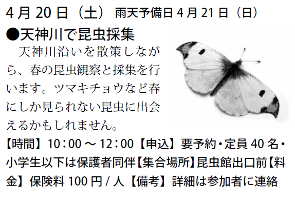 予定は、友の会ニュース又は、昆虫館に確認下さい。