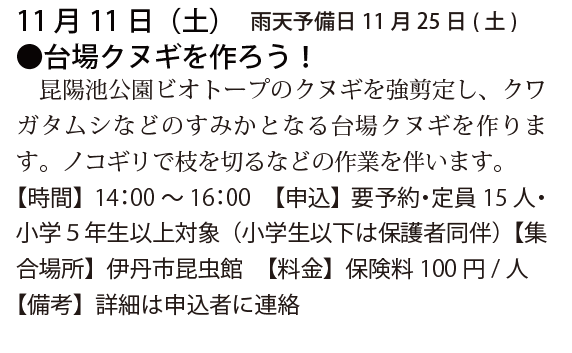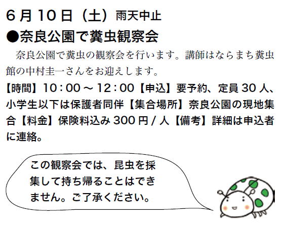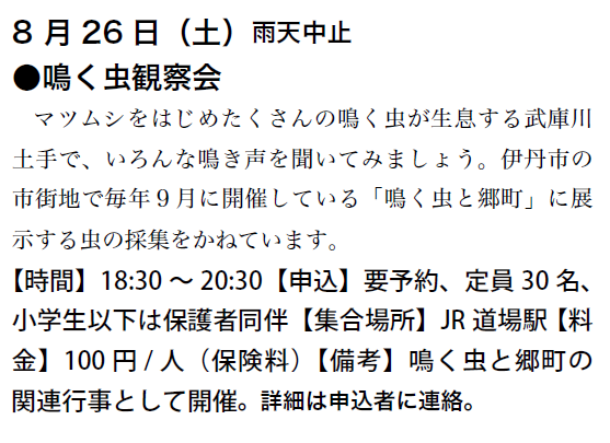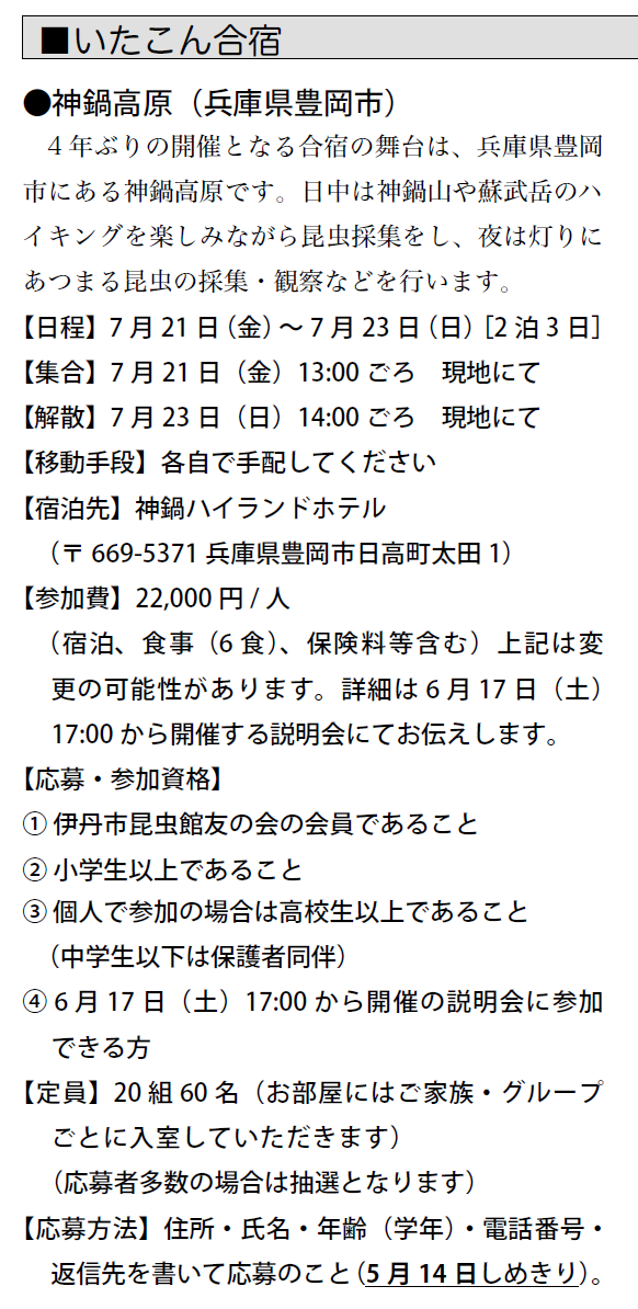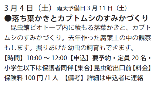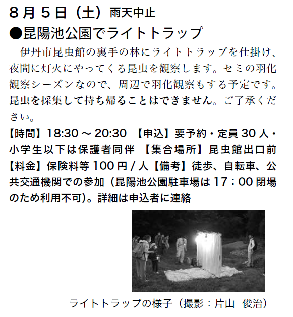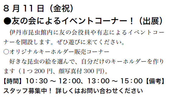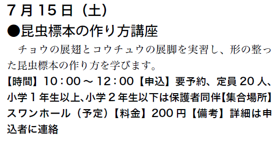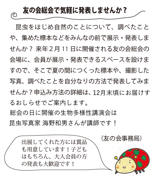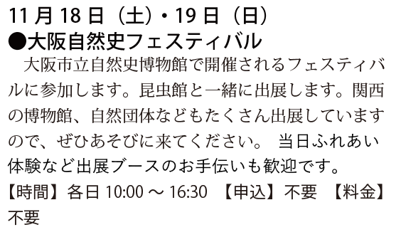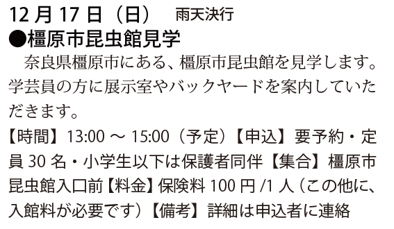 予定は、友の会ニュース又は、昆虫館に確認下さい。