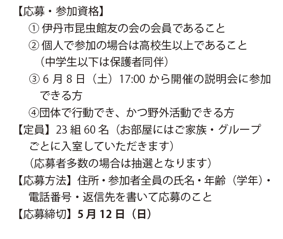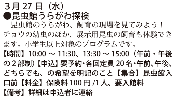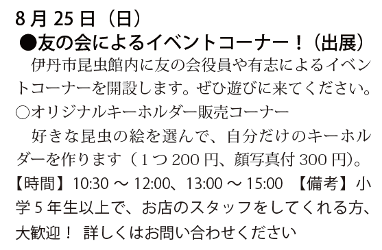 予定は、友の会ニュース又は、昆虫館に確認下さい。