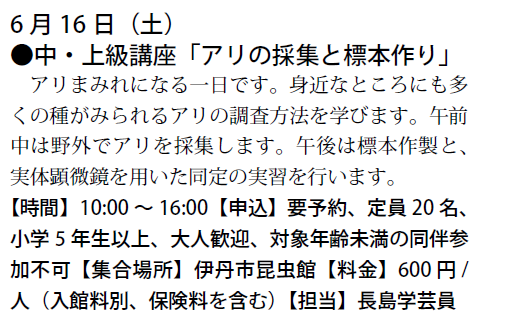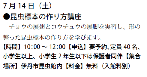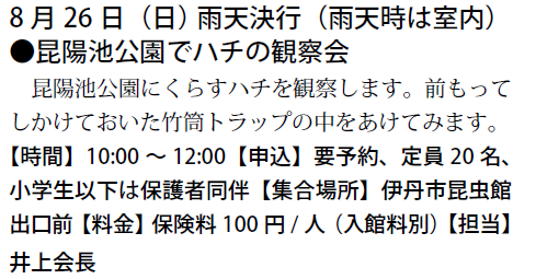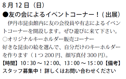 予定は、友の会ニュース又は、昆虫館に確認下さい。