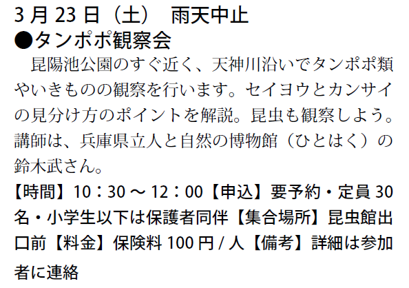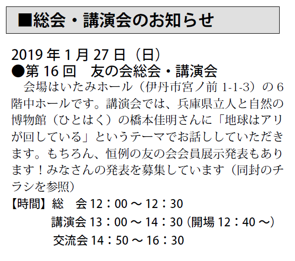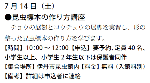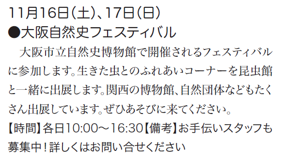 予定は、友の会ニュース又は、昆虫館に確認下さい。