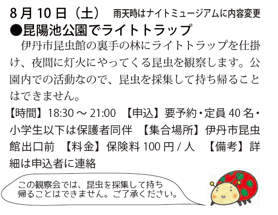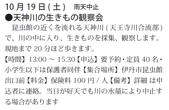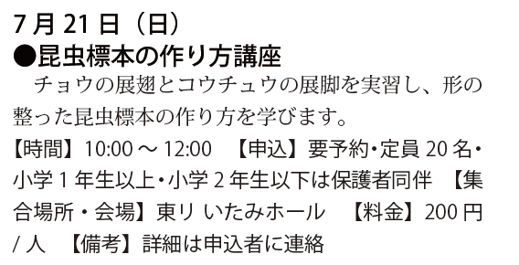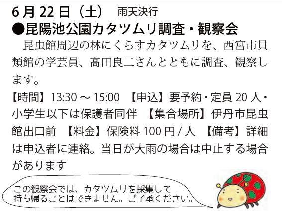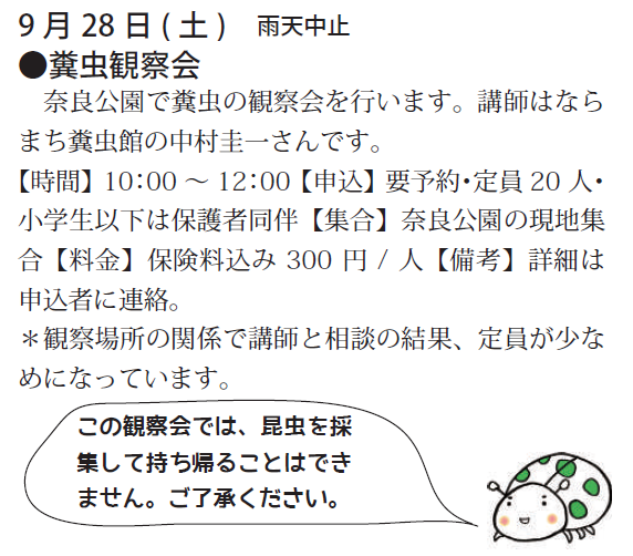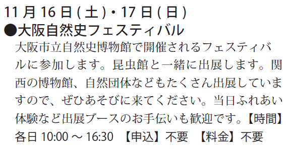 予定は、友の会ニュース又は、昆虫館に確認下さい。